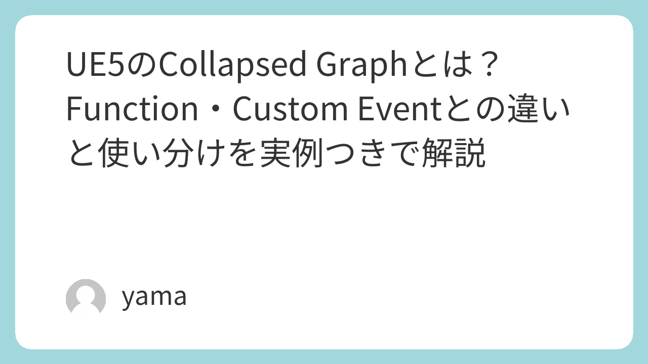 Blueprintが長くなってきたときは、まずCollapsed Graphで流れを整える。そのうえで、再利用が見えてきた部分だけFunctionへ切り出す。この考え方で進めると、初心者でもかなり扱いやすくなります。
